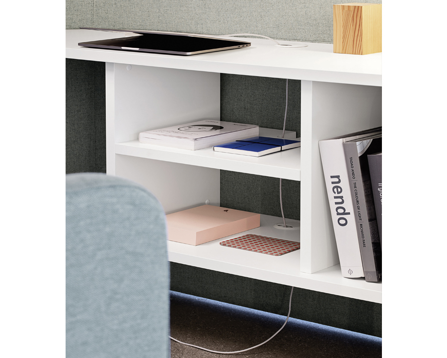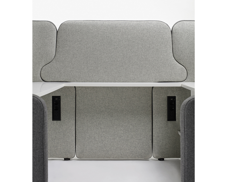 The pod version with its separate office is ideal for waiting areas and meeting rooms, ensuring the privacy required for open design environments. These sofas can be equipped with power outlets and USB and/or a side magazine pocket.