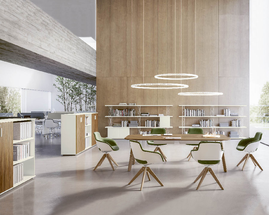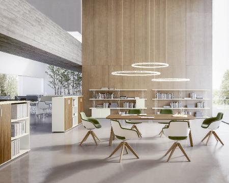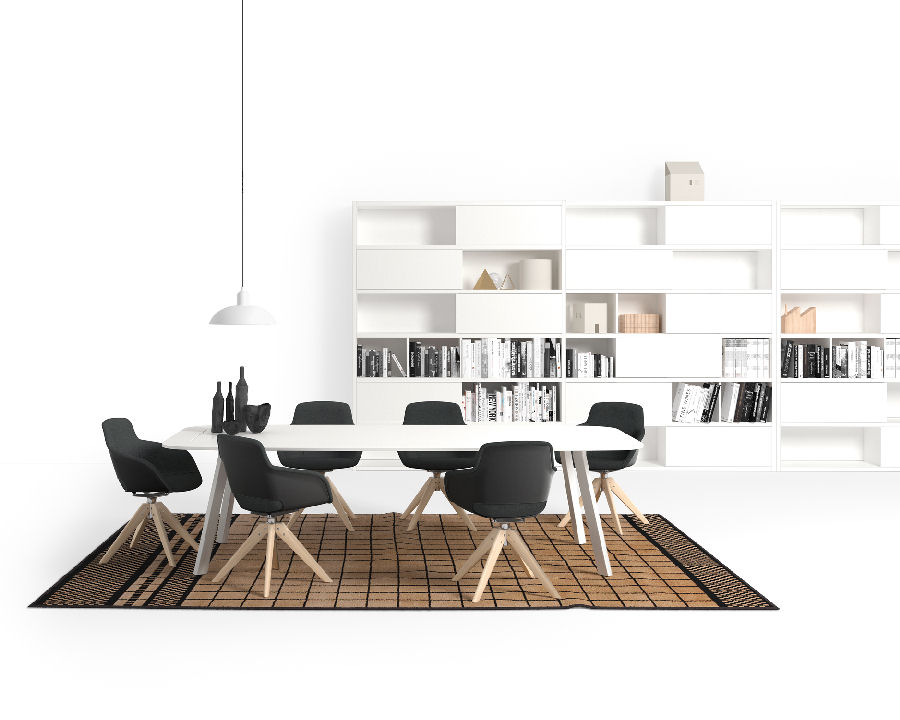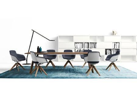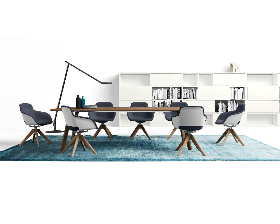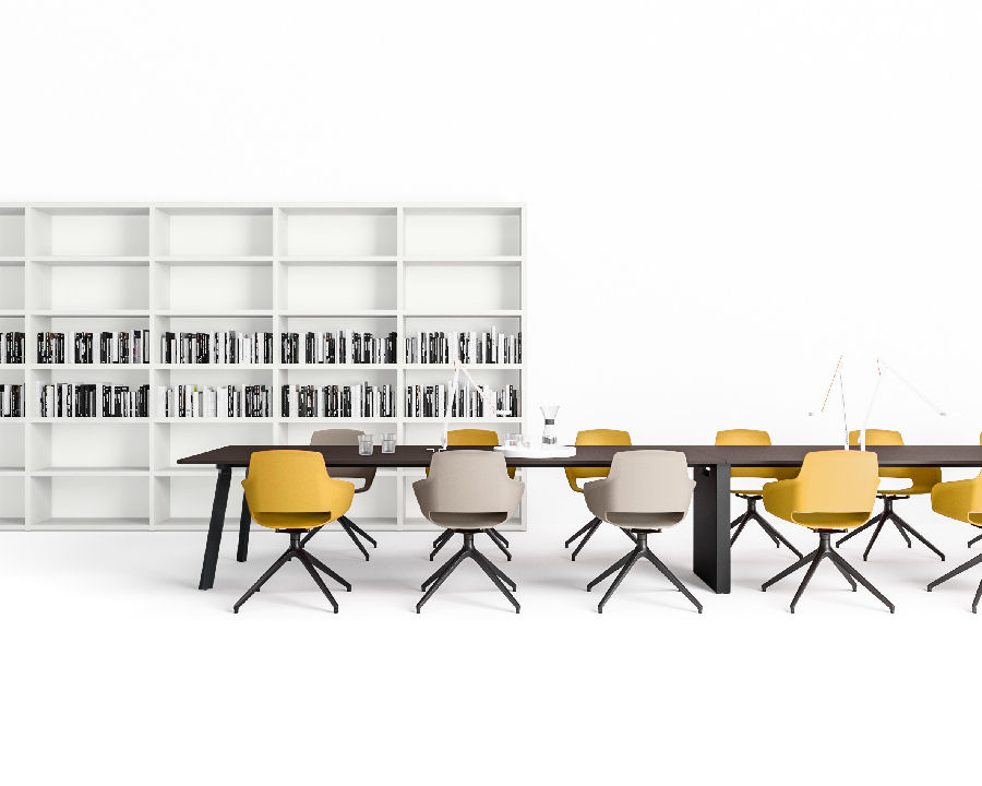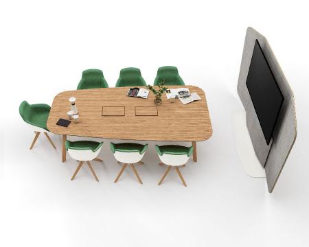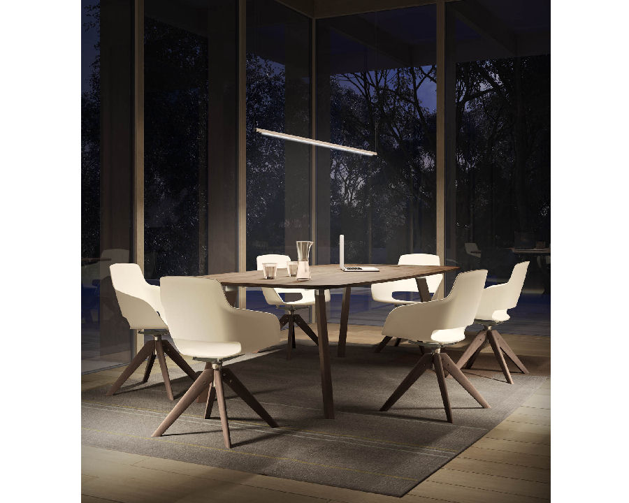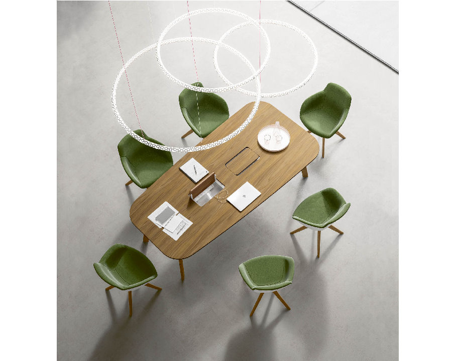 Το τραπέζι συσκέψεων STAY έχει τα ιδανικά χαρακτηριστικά για επαγγελματικούς χώρους συνεργασίας, διευθυντικά γραφεία και αίθουσες συνεδριάσεων. Το στρογγυλεμένο σχήμα του και η πλούσια αναλογία του πάνω σε ξύλο, μελαμίνη ή HPL μπορούν άνετα να φιλοξενήσουν ηλεκτρονικές συσκευές και έγγραφα.