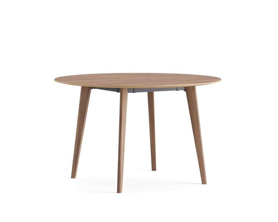 Η επιφάνεια του τραπεζιού διατίθεται είτε σε φυσικό καπλαμά ξύλου είτε σε laminate, ενώ τα κομψά πόδια είναι κατασκευασμένα από μασίφ ξύλο με επένδυση καπλαμά.
