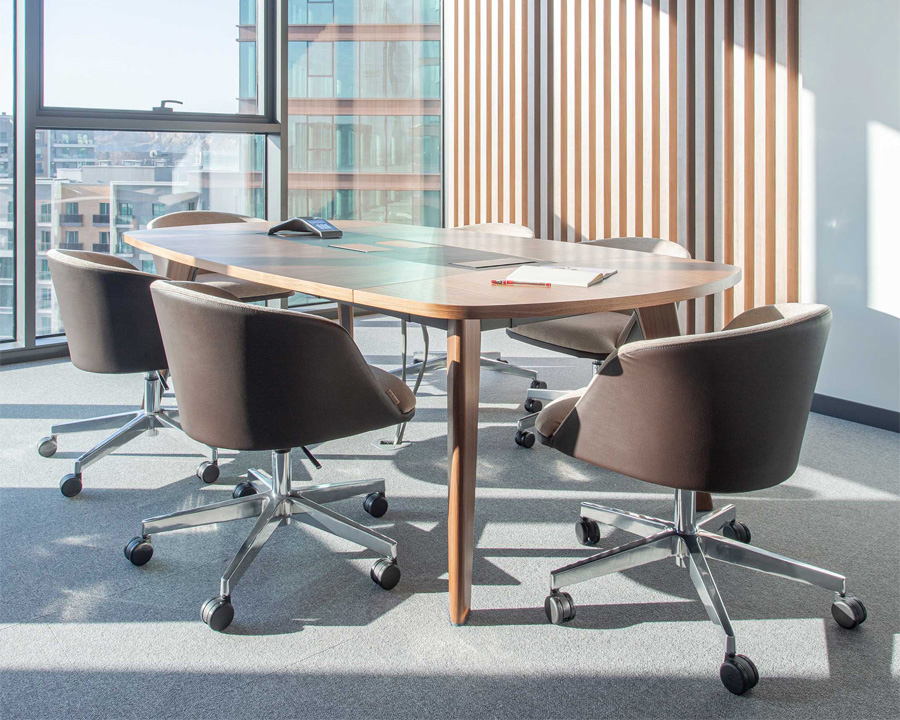 Η σειρά τραπεζιών συσκέψεων MIKADO συνδυάζει διαχρονικό design με λειτουργικότητα, προσφέροντας επιλογές σε τετράγωνες, ορθογώνιες και κυκλικές επιφάνειες σε ποικιλία διαστάσεων.